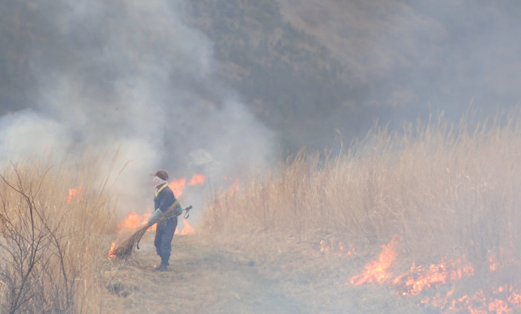 每到春天,當地人為了保護濕原豐富的植被會在蓼原濕原上進行燒荒。濕原的生態系統非常容易發生變化,如果不進行人為的控制,這裡將變成灌木叢進而變成森林,最終失去生物多樣性。