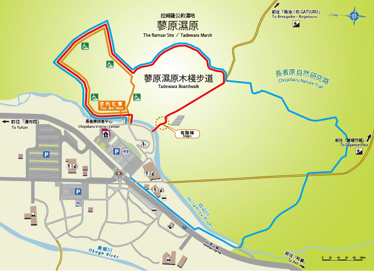 蓼原濕原位於九重連山北部山腳海拔約一千米的地方。受到山上數量豐富的湧泉的恩惠,多種動植物得以在這個濕原生長。