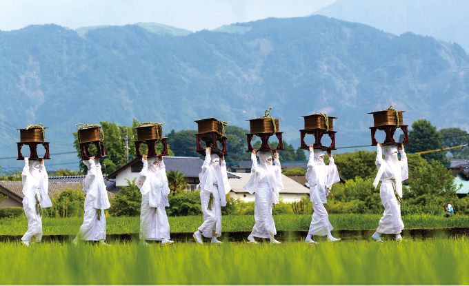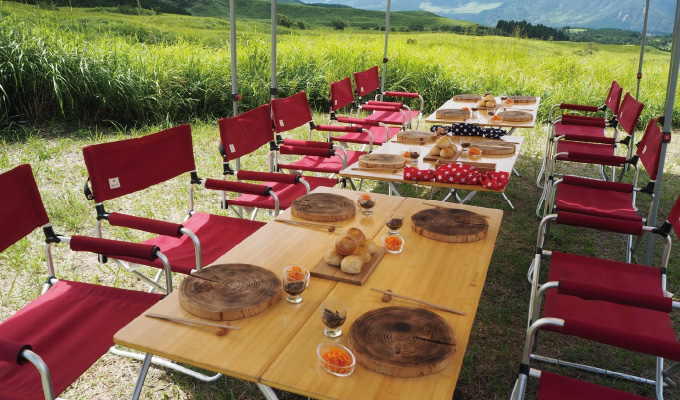 Rent a bicycle to ride and eat your way through Aso’s fantastic food culture, which includes traditional hearth-cooked dengaku, hearty dago-jiru soup, a rice bowl topped with Aso’s famous Akaushi wagyu, and more!